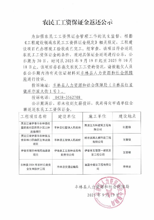 農(nóng)民工工資保證金返還公示